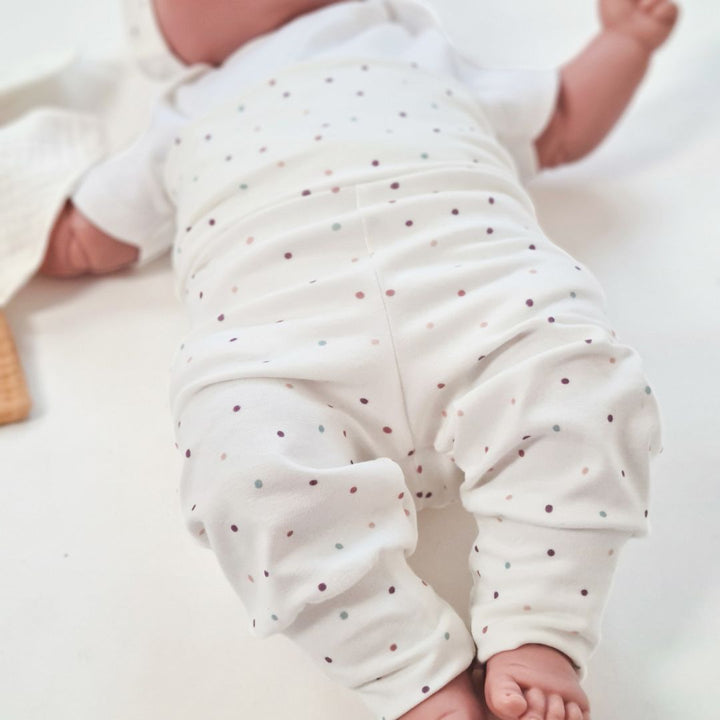 Pas pri hlačah je širši in se lahko zaviha ali pa odviha in tako otroka lepo greje čez trebušček. Spodaj pa so zaključene s patentom, ki se tudi lahko zaviha, ko otrok zraste pa se odviha.