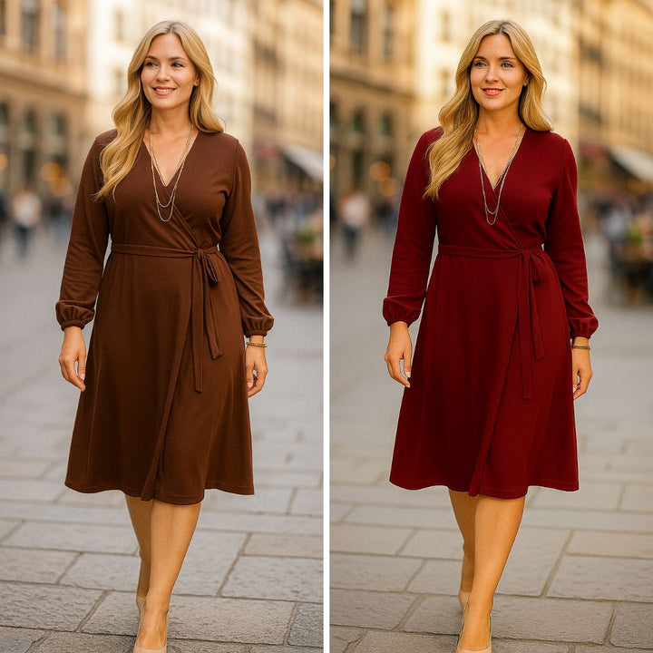 Obleka Olivia je narejena v moji šivalnici z mislijo na udobje, ženstvenost in brezčasno eleganco. Mehko blago poskrbi za prijeten občutek na koži in čudovit padec tkanine, ki se prilega vsaki postavi. Obleka je narejena na preklop in se v pasu zaveže.
